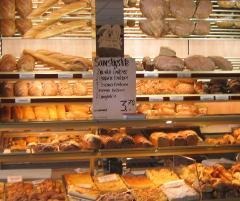 Wir stellen täglich ein großes Sortiment an Backwaren frisch her.Zur Herstellung unserer meisten Brotsorten verwenden wir einen Natursauerteig, selbstverständlich backen wir auch Dinkelbrot und Brötchen ,täglich wechselnde Körnerbrote und Körnerbrötchen. Auserdem haben wir eine große Auswahl an Kaffeestückchen und Kuchen aus eigener Herstellung. Sie können unsere Backwaren auch an unseren Stehtischen mit einer Tasse frischen Kaffee verzehren.